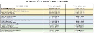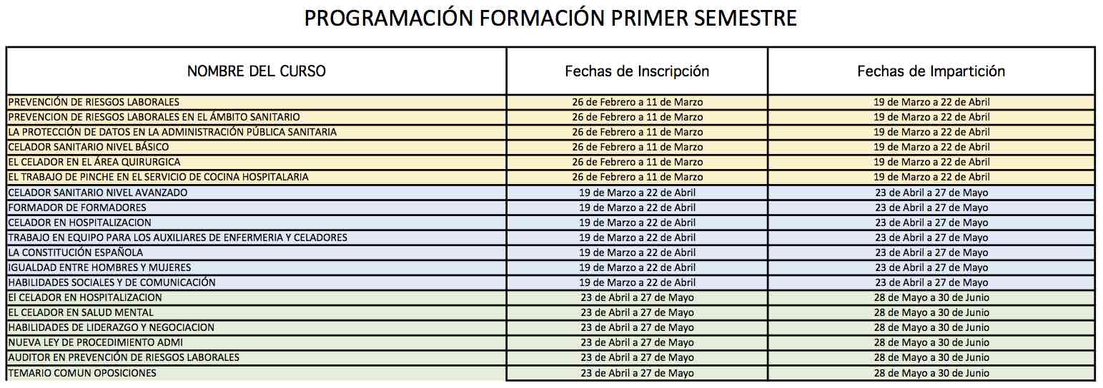 La relación y fechas concretas de inscripción e impartición de los Cursos planificados para el Primer Semestre del 2018 es la siguiente, sin perjuicio de que se incluyan algunos más: