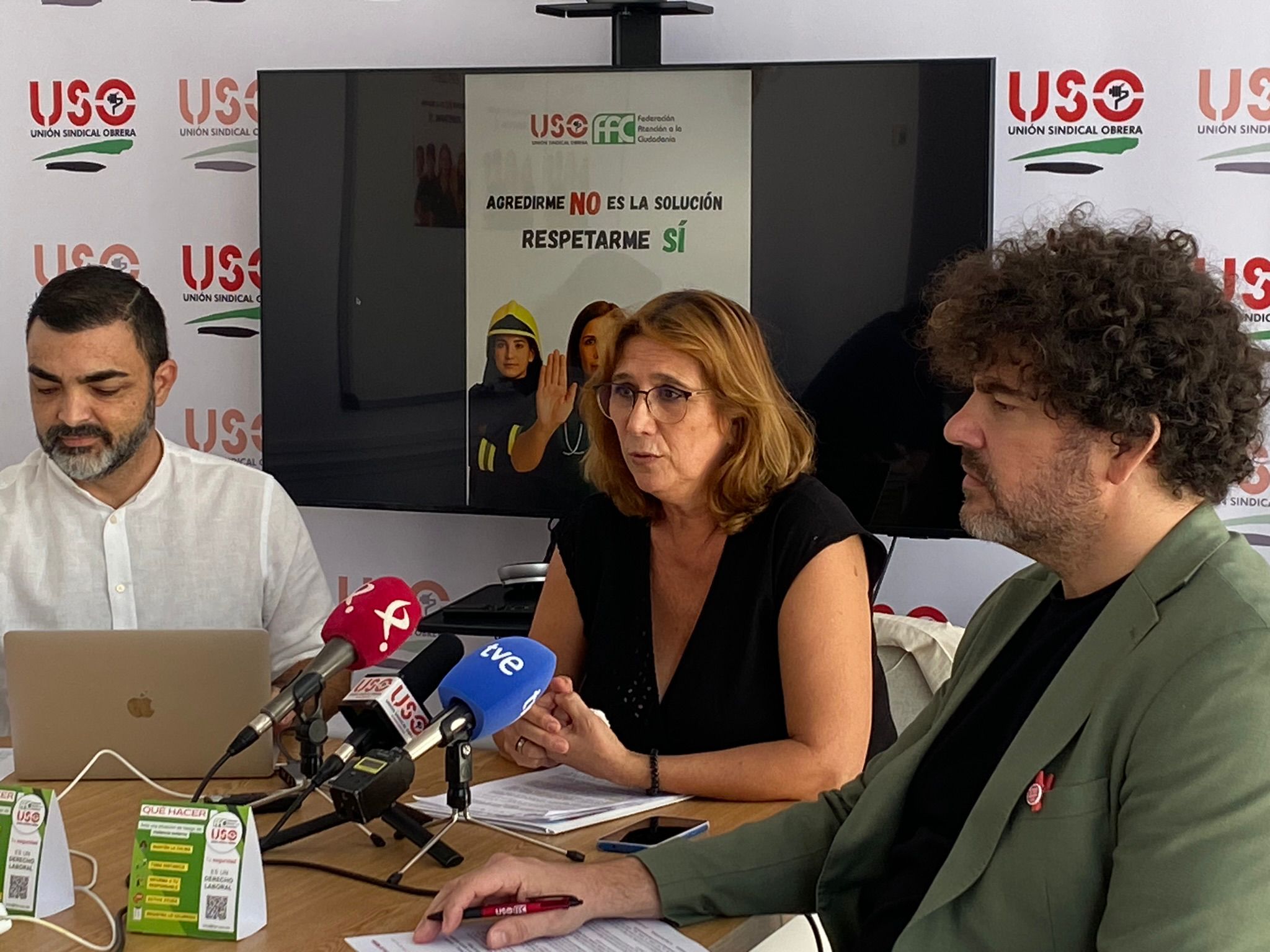 La rueda de prensa fue iniciada por la Secretaria de Prevención y Salud Laboral de FAC-USO, Ana Aviles, quien subrayó la necesidad urgente de frenar el elevado número de casos de violencia externa y la importancia de concienciar a la ciudadanía sobre el respeto que merecen las personas trabajadoras que les atienden en los distintos servicios públicos.