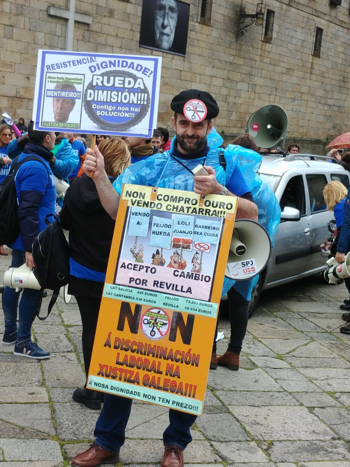 Funcionarios de la Administración de Justicia procedentes de las cuatro provincias gallegas reclamaron la dimisión del vicepresidente de la Xunta, Alfonso Rueda, al que consideran incapaz para resolver el conflicto. Las negociaciones con la Xunta continúan bloqueadas.